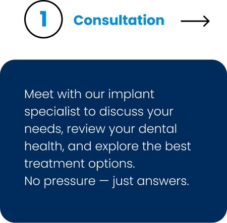 Meet with our implant specialist to discuss your needs, review your dental health, and explore the best treatment options.