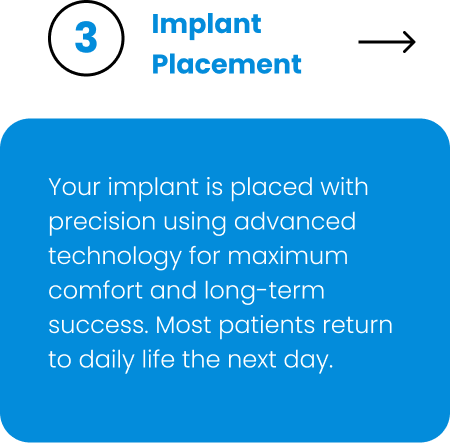 Your implant is placed with precision using advanced technology for maximum comfort and long-term success. Most patients return to daily life the next day.